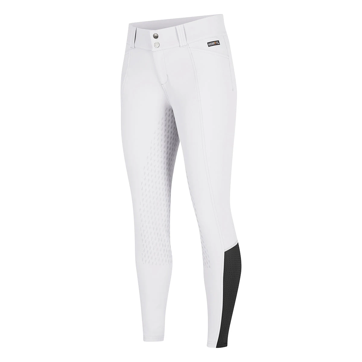 Exceptional performance meets tradition. The stretch-woven fabric is infused with the cooling power of Ice Fil®, to keep you cool and comfortable. Provides excellent coverage, four-way stretch integrity, and support. The fabric’s exterior is stain and dirt resistant, with figure flattering seams are thoughtfully placed for articulation in the saddle. Along with Kerrit Sticks™ silicone patches combine for a fluid, polished pant that helps women look and ride their best.