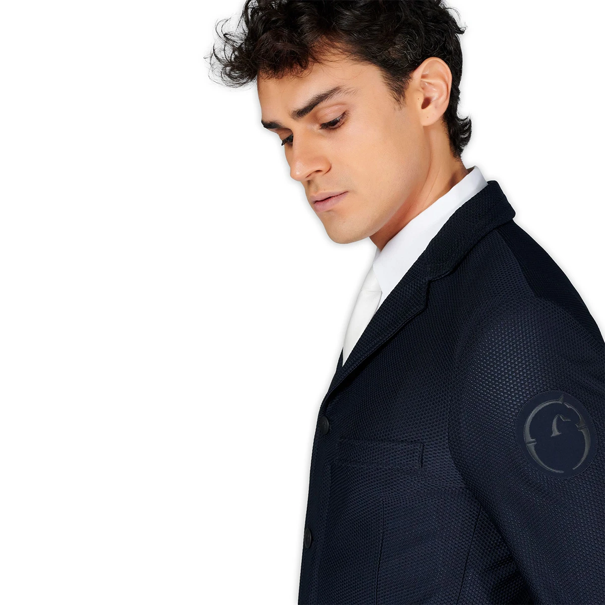Nagano is the new unlined men’s competition jacket. Made with an extremely light perforated fabric ideal for the high temperatures. Double fastening on the front: hidden zip and three buttons with Vestrum logo to ensure the closure of the jacket. Vestrum logo on the sleeve. The light and breathable fabric and the slits on the back guarantee freedom of movement